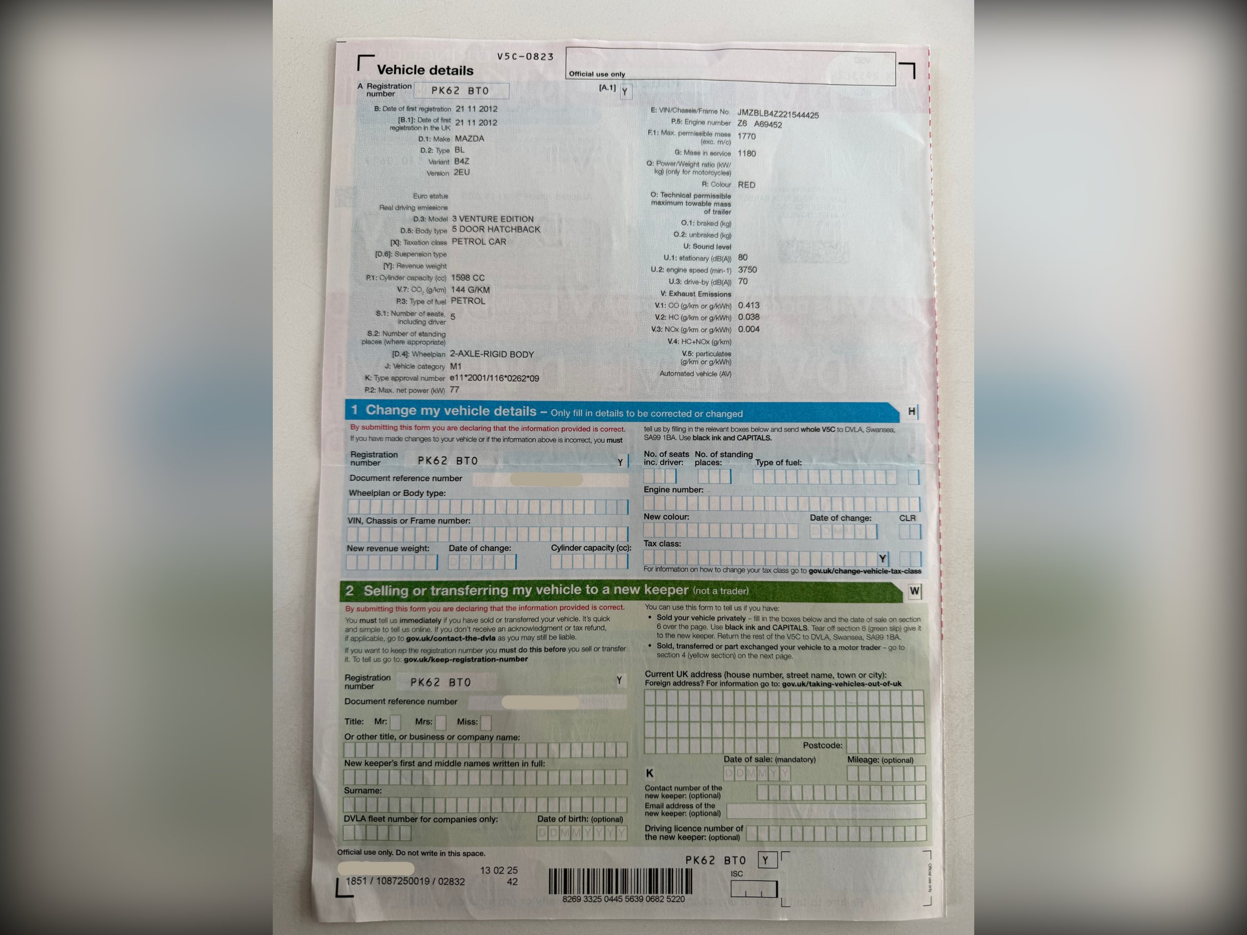 2012 Mazda 3 1.6 Venture Hatchback 5dr Petrol Manual Euro 5 (105 ps)