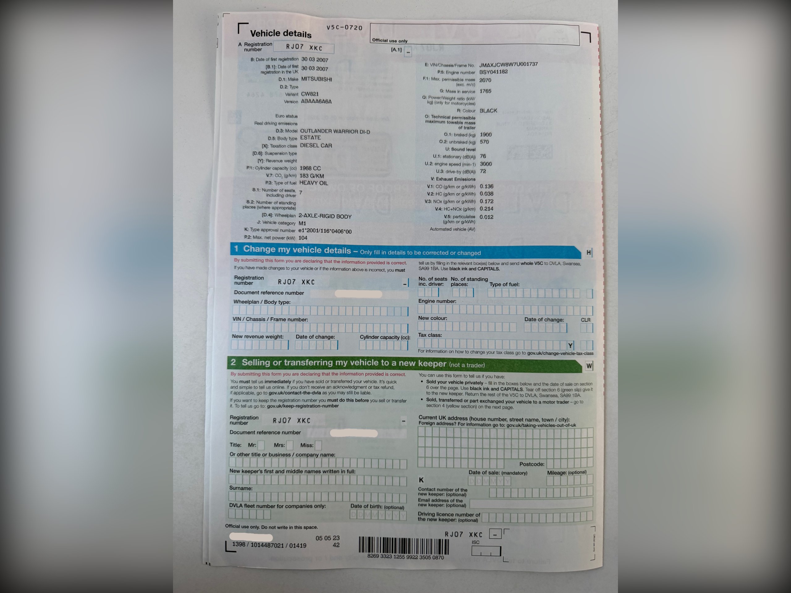 2007 Mitsubishi Outlander 2.0 DI-DC Warrior SUV 5dr Diesel Manual 4WD Euro 4 (138 ps)