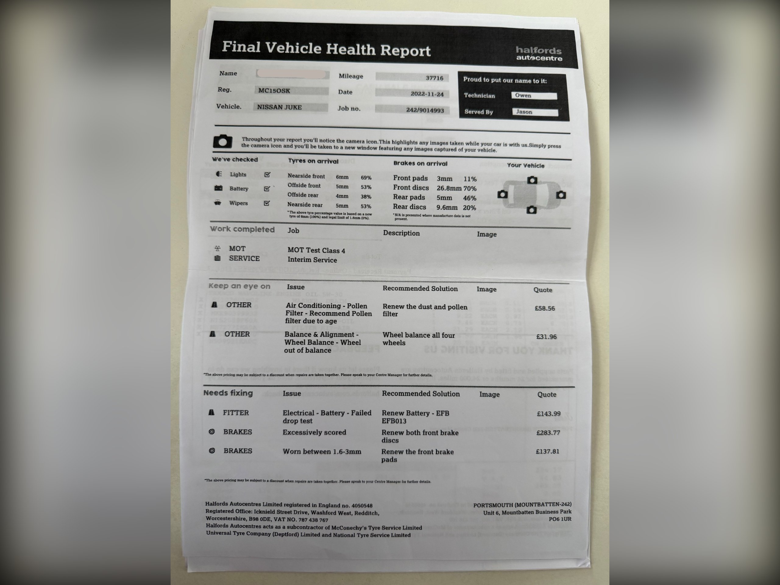 Engine Size:1.6LMPG Combined:39.2mpgMPG Urban:29.7mpgMPG Extra-urban:47.9mpgMOT Expires:30/11/2026 -