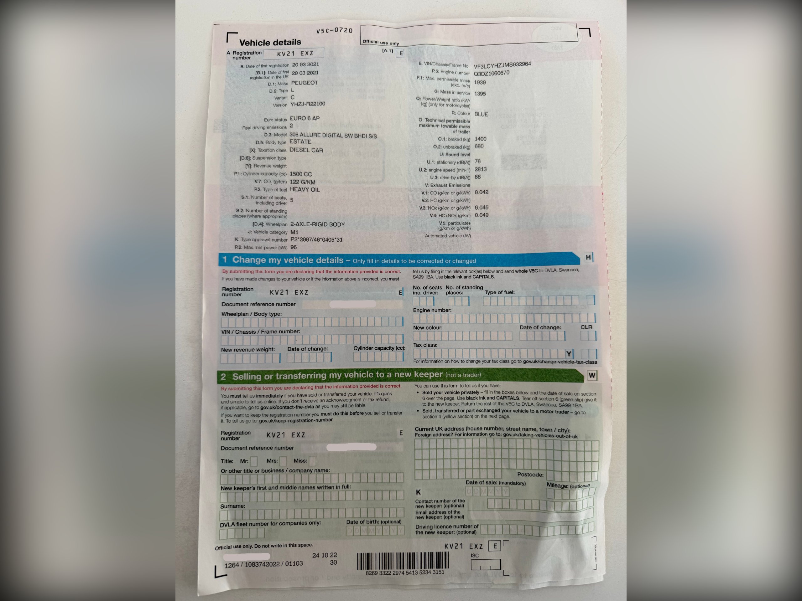 2021 Peugeot 308 SW 1.5 BlueHDi Allure Estate 5dr Diesel Manual Euro 6 (s/s) (130 ps)